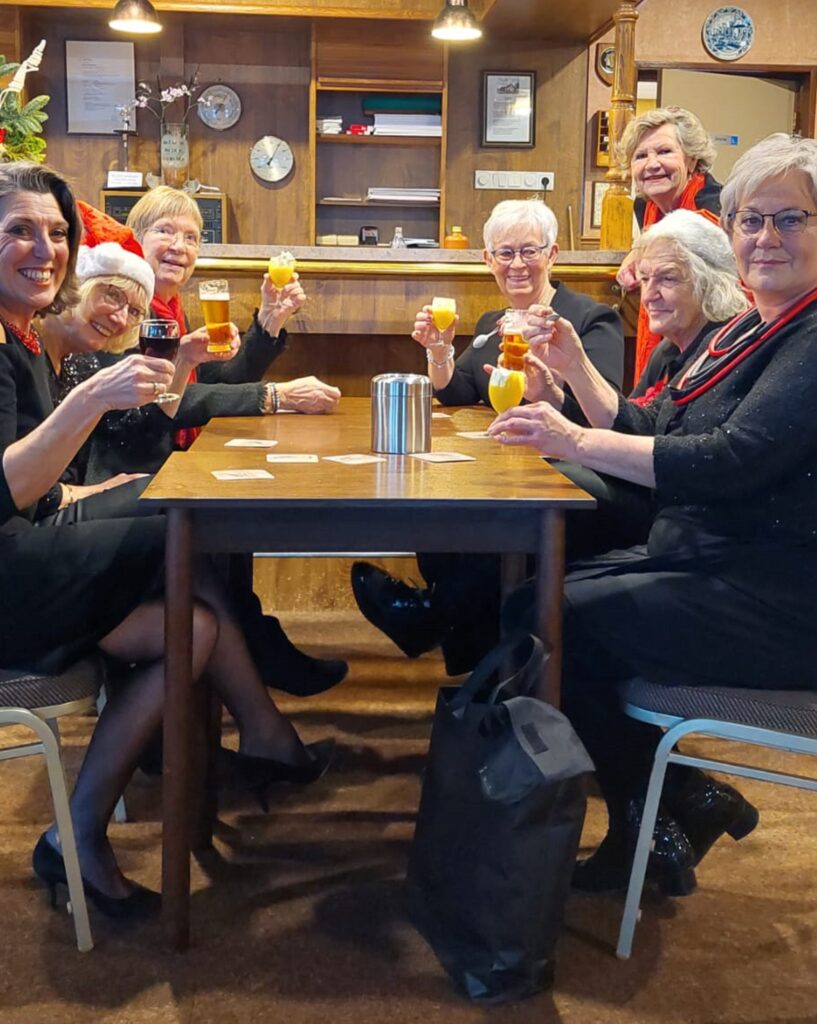 Vanmiddag ons laatste kerstoptreden gehad voor de Zonnebloem afd. Tolberg bij ‘Huis ten Halve’ in Roosendaal. We hadden vandaag bij onze leden een jarige en een paar mensen die vandaag hun trouwdag vierden, maar toch ook maar even kwamen zingen. Na het optreden hebben we genoten van een drankje en voor de meeste van ons werd dat een advocaatje met slagroom