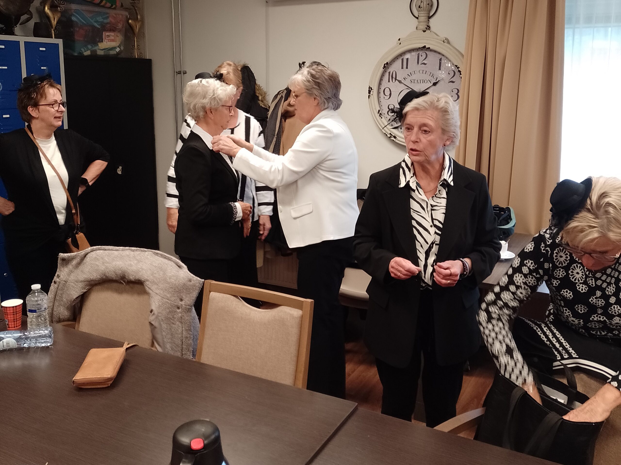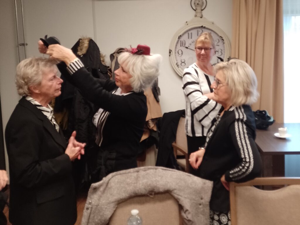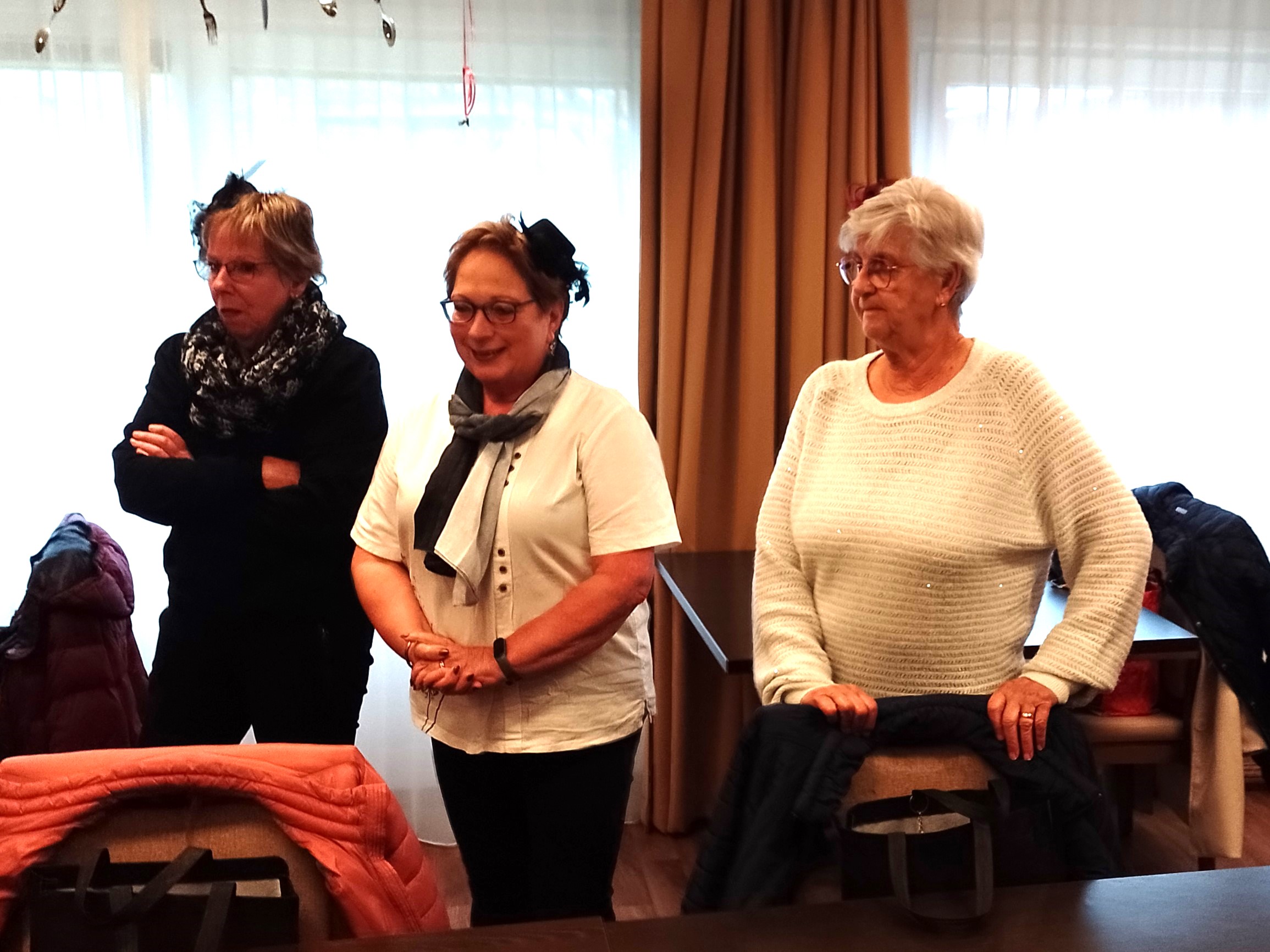 Optreden ‘Nieuwe ABG’ in BoZ 8-11-2024 Voor het optreden opzetten van de hoedjes: Foto’s van Michel tijdens ons optreden: We zingen ‘Ritme van de regen’ inclusief de ‘regen’ van Caroline